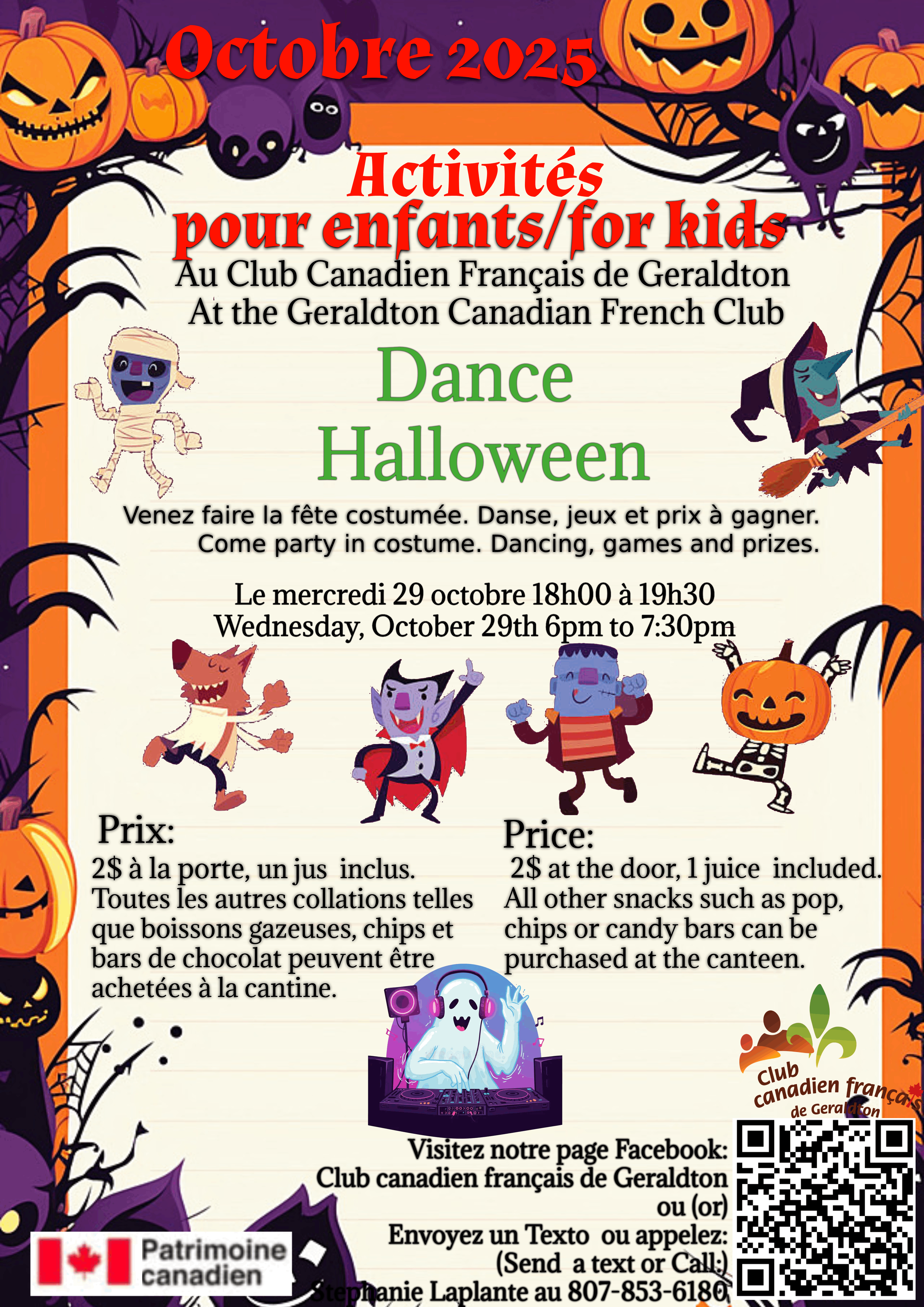 Venez faire la fête costumée. Danse, jeux et prix à gagner.