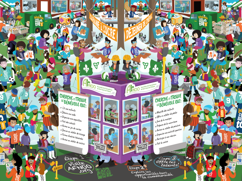 Voici des exemples marquants où l'ensemble de petits gestes, venant de plusieurs bénévoles, rend possible la tenue d'activités ou de kiosques et permet de faire vivre des expériences francophones à la communauté.