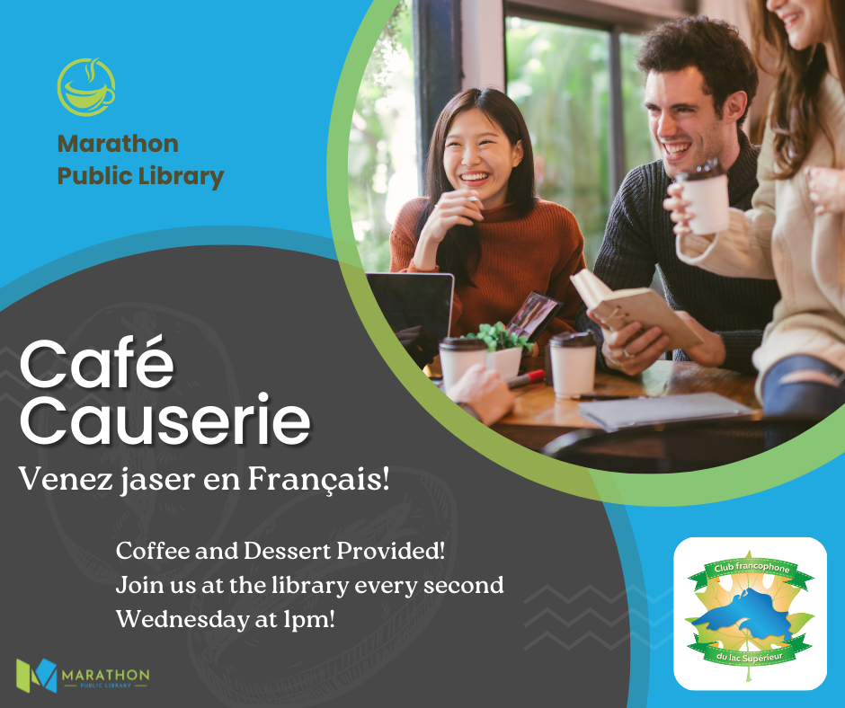 Café-causerie en partenariat avec la bibliothèque de Marathon.
