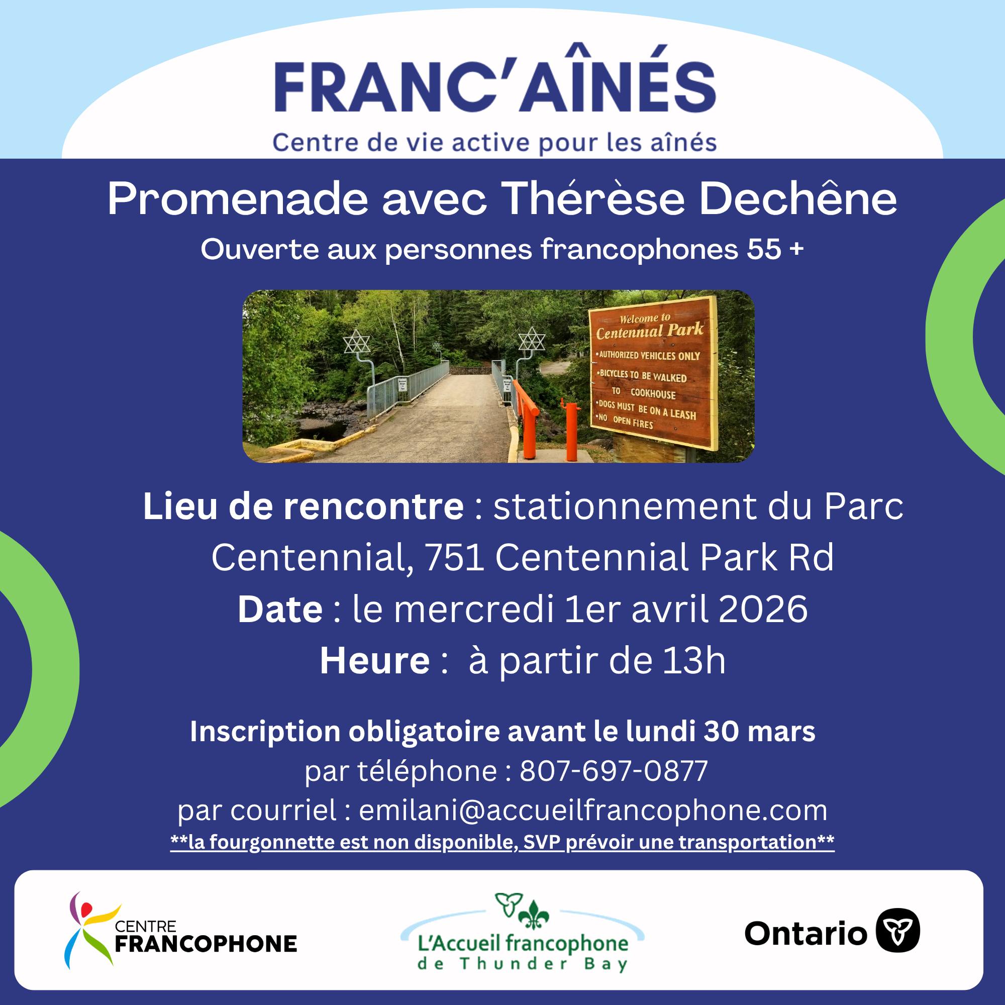 Veuillez vous inscrire par téléphone ou par courriel : 📞 807-697-0877 📧 emilani@accueilfrancophone.com