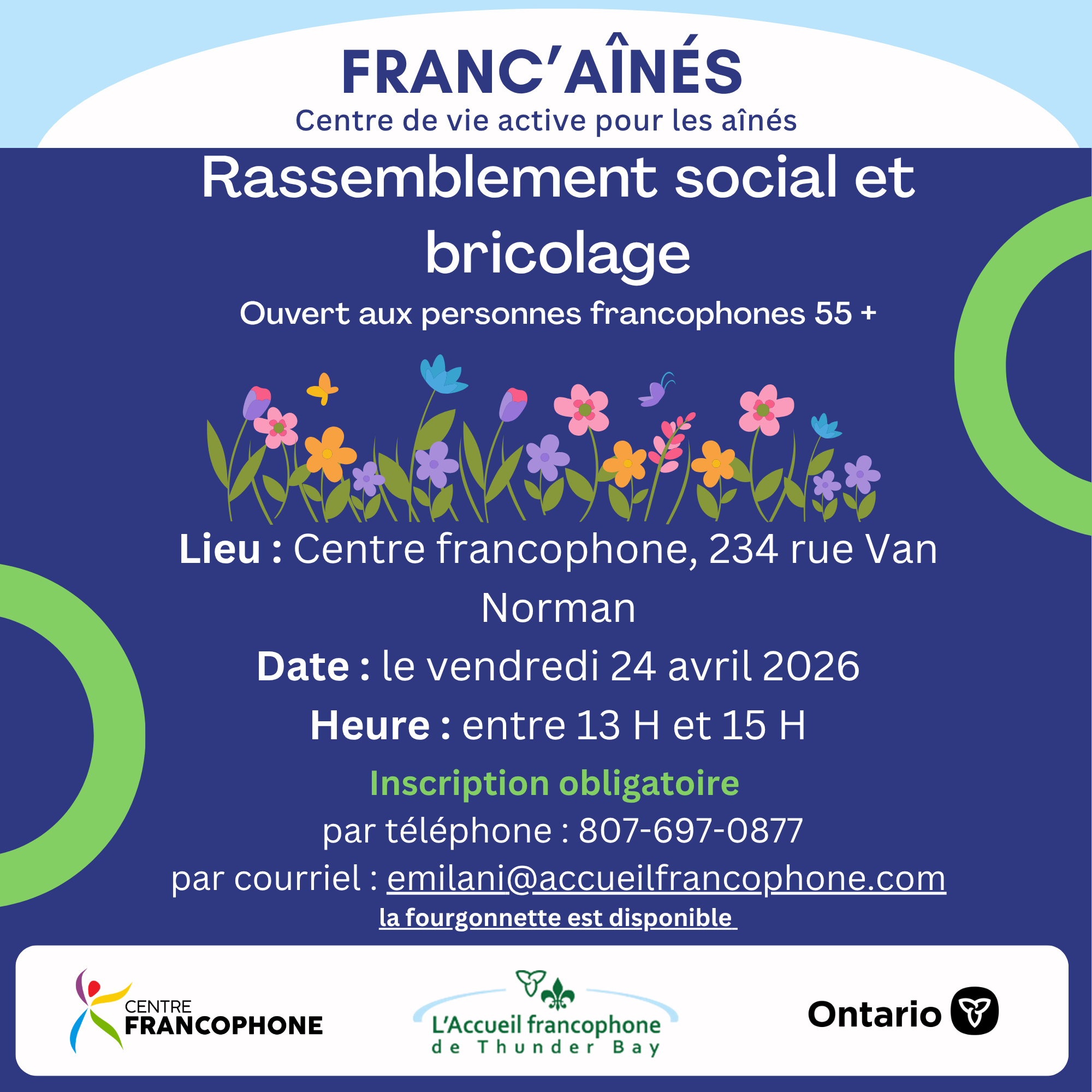 SVP réserver votre place auprès d'Emma : emilani@accueilfrancophone.com