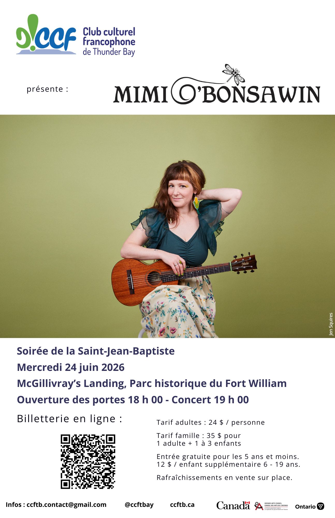 Le CCF de Thunder Bay présente MIMI O'BONSAWIN en spectacle :