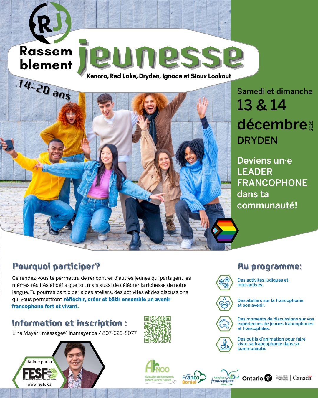 Jeunes francophones ou francophiles, entre 𝟏𝟒 𝐞𝐭 𝟐𝟎 𝐚𝐧𝐬, des villes de kenora, Red Lake, Dryden, Ignace and Sioux Lookout: Ce rassemblement est pour vous! 𝐓𝐮 𝐯𝐞𝐮𝐱 𝐭’𝐢𝐦𝐩𝐥𝐢𝐪𝐮𝐞𝐫 𝐝𝐚𝐧𝐬 𝐭𝐚 𝐜𝐨𝐦𝐦𝐮𝐧𝐚𝐮𝐭𝐞́ 𝐭𝐨𝐮𝐭 𝐞𝐧 𝐯𝐢𝐯𝐚𝐧𝐭 𝐮𝐧𝐞 𝐞𝐱𝐩𝐞́𝐫𝐢𝐞𝐧𝐜𝐞 𝐮𝐧𝐢𝐪𝐮𝐞 𝐞𝐧 𝐟𝐫𝐚𝐧𝐜̧𝐚𝐢𝐬? Voici l'occasion en 𝕆ℝ! ![]()